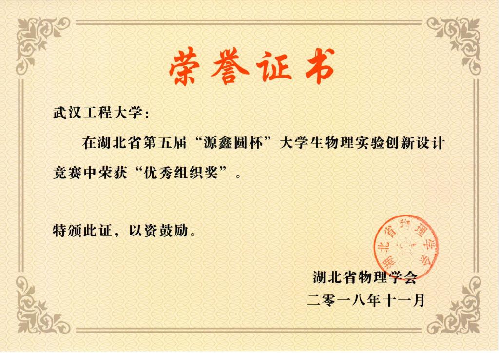 (本网讯 通讯员余雪里)10月26-28日,第五届湖北省老员工物理实验创新设计竞赛在湖北工业大学举行。经过两天的紧张赛事,公司学子再创辉煌成绩,在湖北的部属、省属共计33所高校760余名师生组成的323个代表队中脱颖而出,获得省一等奖一项,二等奖三项,三等奖三项,还获得了“湖北高校物理实验创新设计竞赛优秀组织奖”,所获奖项实现了公司历届奖项的历史性突破,充分展现了公司学子的实践创新能力更上新台阶。