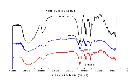 从红外光谱图中我们可以发现聚乙烯吡咯烷酮与CuCl络合物的羰基发生了偏移,从1659.94 减小到1655.06。