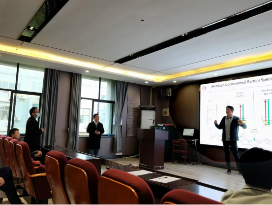 报告会中,陈文研究员深入浅出地讲解了表面等离激元的背景、应用和最新的研究进展。重点介绍了与公司青年教师胡华天博士合作在国际顶尖学术期刊《Science》上发表的研究成果《分子光学力纳腔中的连续波频率上转换》该成果将亚毫瓦功率量级的中红外(~32 THZ)高效地上转换至可见光(~400 THZ)区域,解决了传统非线性光学中的难题,对简化红外光谱探测技术实现单分子灵敏度测量具有重要的意义。会议期间还与参会师生进行了深入互动,就学术与研究、教书育人和青年学者成长等诸多方面的问题进行了广泛而热烈的交流。最后对于光学的发展给出了自己的看法并做出了展望,还告诫同学们一定要戒骄戒躁,只有沉下心来做科研才能有很好的收获。