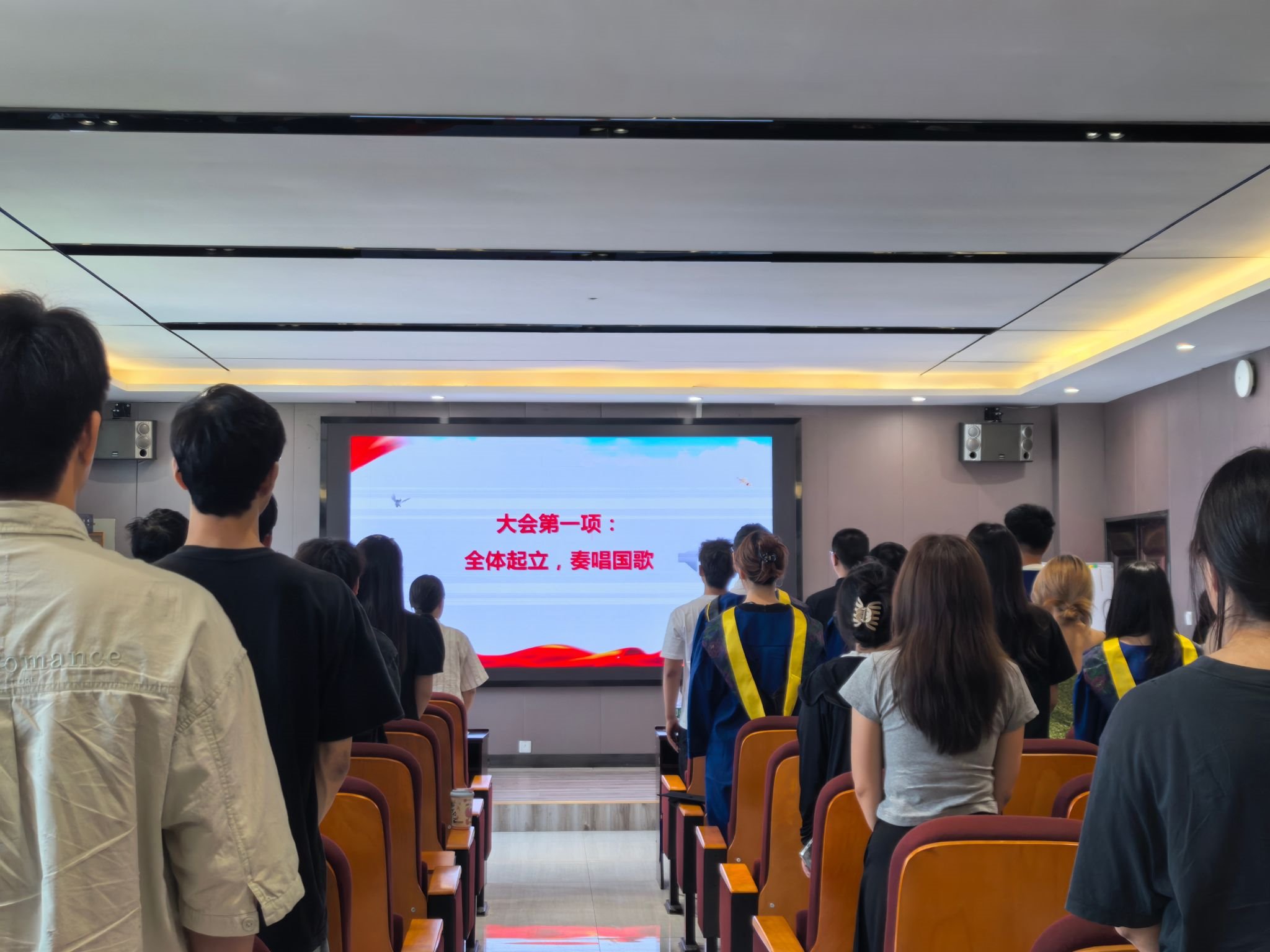 伴随着激昂的旋律,嘹亮的国歌声响彻会场,荡漾在每一位党员心间,也拉开了这场主题党日活动的序幕。“请大家举起右拳!”伴着这一声的引领,随即而来的是铿锵有力的宣誓,这一庄重时刻,不仅是对党的忠诚宣誓,更是对即将启程的毕业生党员的殷切叮嘱,提醒他们无论身在何处,都当铭记党员身份,践行入党承诺。