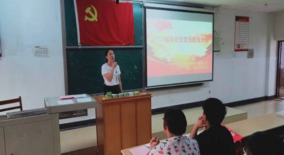 最后,15级辅导员曾峥老师为大家解读了《致2019届毕业生党员的一封信》,提醒大家要保管好自己的档案材料等,在今后的路上保持党员领头意识,继续前行。