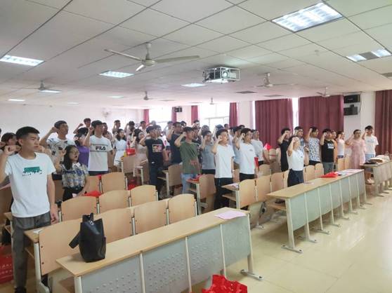 首先,全体党员起立齐唱国歌,并在公司党委副书记曾颖的带领下重温入党誓词。每一位党员郑重地举起右手,进行他们在毕业离校前最后一次宣誓。在整齐响亮的宣誓声中,大家越发增强了作为党员的榜样意识。