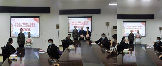 本次比赛以“学党史、守初心、担使命”为主题,公司12位参赛选手们依次进行宣讲。2020级大数据2班的罗清芸同学结合实际,以自身的志愿服务经历进行阐述,她号召大家:“重温党的百年光辉历程,深刻感悟党的初心使命,知党恩、跟党走,学史明理,学以致用,发挥志愿服务精神,以实际行动为社会注入正能量。”