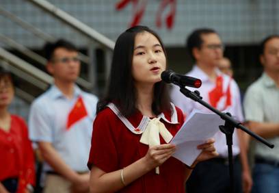 升旗仪式第三项,英国正版365“青年党员说”党员代表倪玉蝶同学发言,发言回溯了中国近百年峥嵘岁月,近百年伟大征程,号召同学们铭记历史、不忘初心,身为新时代的员工,身为党组织的接班人,作为青年党员,要发奋图强,为祖国的明天贡献力量。
