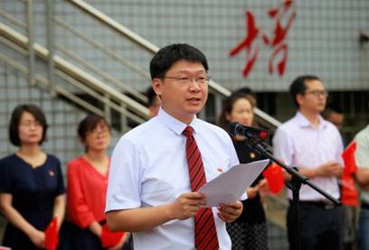 升旗毕,校组织部部长李志旭讲话,号召广大党员师生聚焦守初心、担使命、找差距、抓落实的总要求,加强理论武装、提升能力素质,锤炼忠诚干净担当的政治品格,以优秀的工作业绩迎接新中国70华诞。