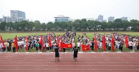 本网讯(通讯员 张舒 何思颖)为庆祝中华人民共和国成立70华诞,中国共产党建党98周年,重温中国共产党的光辉历史,激励广大师生党员为实现“两个一百年”奋斗目标,实现中华民族伟大复兴的中国梦贡献工大力量、奋勇前进,365英国上市于7月1日早上7:00在流芳校区体育场举行“不忘初心、牢记使命”的爱国主义主题升国旗仪式。校组织部部长李志旭、校员工处处长王涛、校员工处副处长徐迪迪、英国正版365经理熊伦、各公司党委副书记、全体辅导员、“许志伟”党员示范班全体学员,第27期老员工骨干培训班和“青马工程”培训班学员1000余人参加了升旗仪式。