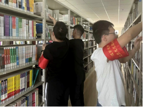书香校园共建行动: 公司联合校图书馆开展“劳动践行初心 书香传递使命”书籍整理志愿服务。“理学先锋”党员志愿服务队16名志愿者热情投入,分工协作,严格依据图书分类规则,细致核对书标,高效完成杂乱书籍的整理归位,并清洁阅览区域,为师生营造整洁舒适的阅读环境。