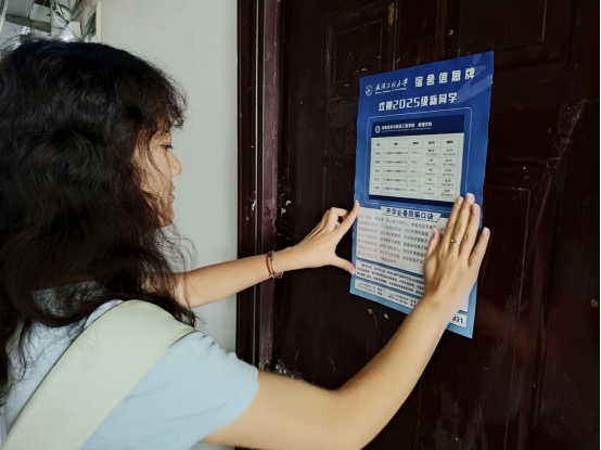 为给新生创造一个安全、舒适、温馨的居住环境,党员志愿者们深入每一间新生宿舍,开展细致的设施安全检查,排查安全隐患。他们还认真张贴宿舍信息表,方便新生快速入住。此外,志愿者们还巧妙构思,用心装扮宿舍公共区域,努力让陌生的宿舍变成新生们温暖的新家,帮助他们更快地融入新的集体生活。