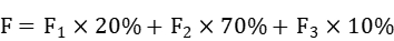第六条 员工综合素质测评的内容包括基本素质F1、课程学习成绩F2、实践与创新能力F3三部分,三部分所占比例分别为20%、70%、10%。员工素质综合测评的最终结果为各项加权之和,按百分制计算,记作F,计算公式为: