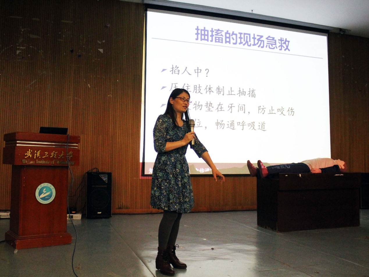 最后,刘医生还向同学们讲授了意外伤害及创伤的现场救护措施,包括对低血糖、烫伤、气管异物梗塞、癫痫、抽搐、出血创伤等各种突发情况的正确应急处理措施,使同学们对紧急救护有了更深刻的认识与体会。整个讲座过程,同学们听得聚精会神,与刘医生频频互动,现场气氛轻松热烈。