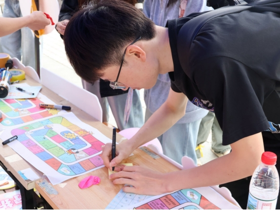 “心理大富翁” 活动区则呈现出另一番热闹景象,员工们2-3 人一组围在棋盘旁,跃跃欲试。每人选择代表自己的颜色棋子从起点出发,投骰子前进的过程中,不时因遇到 “暂停格” 而引发阵阵讨论。“请说一件今天让你开心的事”、“用 3 个词形容此刻的心情”,这些趣味任务看似简单,却巧妙融入了情绪识别与表达的心理知识。