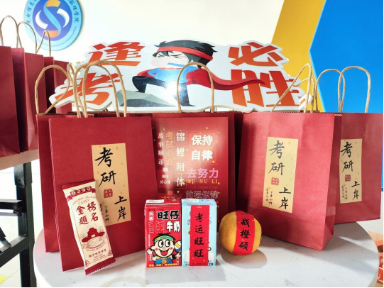 公司提前为考研学子定制了寓意满满的“考研上岸”加油大礼包,每一份大礼包都饱含着对考研学子们的热切关怀和殷切希望。包括橙子、旺仔牛奶、棒棒糖、笔记本等食物、文具用品,寓意考研学子定能考运“旺旺”、金“棒”题名、“本”赴前程、“橙”功上岸,不仅寓意吉利,还能帮助同学们补充营养,保持状态。收到礼物后,同学们纷纷表示感受到了公司的关心和祝福,将在最后冲刺保持良好的心态,以积极乐观的态度去迎接即将到来的挑战。