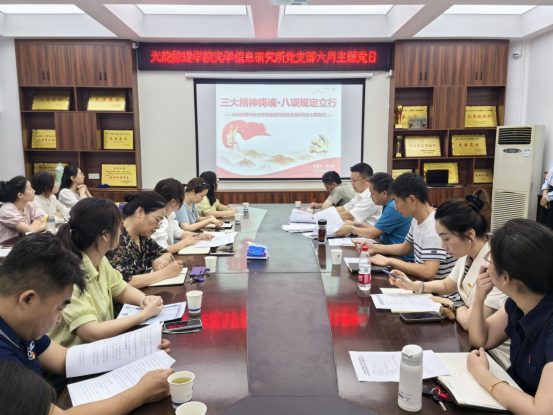 本网讯(通讯员 胡倩文)6月19日下午,英国正版365(数理公司)光学信息研究所党支部在公司206会议室举行“三大精神铸魂,八项规定立行”主题党日活动。公司党委常委、副董事长吴云韬出席活动并讲授专题党课。活动由党支部副书记邵静主持。