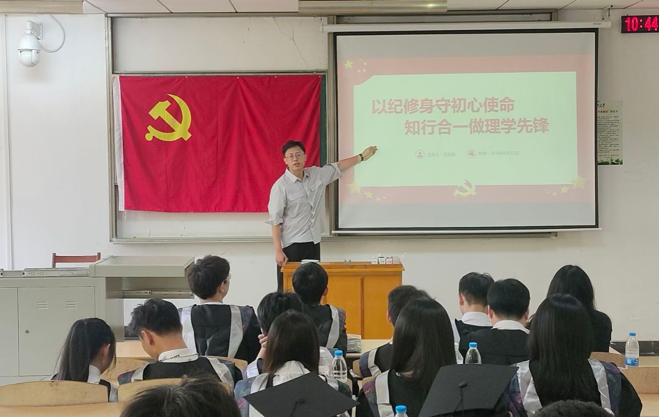 6月12中午,光信第三员工党支部开展“恪守党纪担使命 砥砺前行启新程”主题党日活动。活动在庄严肃穆的国歌声中拉开帷幕,全体党员由支部书记王乐凯领誓,在党旗下重温入党誓词,以铿锵誓言铭刻入党初心,坚定理想信念。之后,王乐凯以“以纪修身守初心使命 知行合一做理学先锋”为题,为全体支部党员上毕业前最后一次党课,带领全体党员学习《中国共产党纪律处分条例》。结合新修订的条文内容青年党员要清楚自身容易犯的错、青年党员要牢记纪律规矩划的线、青年党员要敬畏违纪违法酿的果三方面展开,引导员工认识到纪律是青春的“紧箍咒”,更是成长的“护身符”真正做到言有所戒、行有所止、心有所畏。