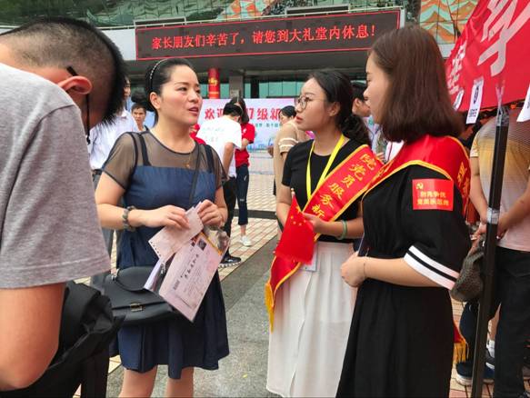 9月6日,理公司员工党员身披绶带,全天候在迎新大本营耐心细致地为员工介绍报到流程及入学须知,引导他们办理入学登记、缴费注册手续,安排他们入住宿舍等。员工党员的热情服务给新生及其家长留下了深刻印象,凸显了员工党员的良好先锋形象。