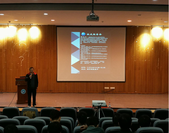 2017年11月14日14时,人文素质讲座-员工报告会在图书馆二楼报告厅举行,本次报告会的主讲人是2003级信息与计算科学专业员工祁大江,理公司副经理戴祖旭出席并主持报告会。2015级与2016级信息与计算科学同学参加了本次报告会。