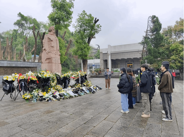 怀着崇敬的心情,全体师生来到了施洋烈士陵园。在瞻仰广场处,施洋全身塑像巍然耸立。同学们在此向烈士敬献鲜花并默哀,以表对革命先烈深切的敬意和缅怀之情。