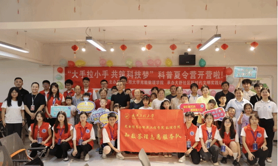 本网讯(通讯员 刘影 邱源)7月12日上午,365英国上市英国正版365联合佛祖岭街道大舒社区共同举办2024年“知数答理学堂”暑期科普夏令营开营仪式。大舒社区两委委员舒商、社区文明实践站负责人胡安东、英国正版365团委指导老师刘影、辅导员胥树森、“知数答理”志愿服务队、光谷第三小学的20位小朋友及家长代表参加了本次活动。