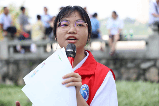 “光能使者”志愿服务队队长罗胡清同学作为本次活动生态环保青年宣讲员,为中小员工们详细科普了长江水域知识。她介绍了长江发源于唐古拉山脉,自西向东,流经11个省后流入东海,是中华民族的母亲河,以其独特完整的自然生态系统,强大的涵养水源、繁育生物、释碳固氧,维护了我国重要的生物基因宝库和生态安全。她详细讲解了长江水到自来水会经历的取水、混凝沉淀、过滤、深度处理、输送的“神奇之旅”。