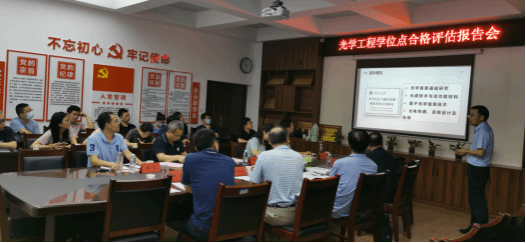 吴晗平教授首先致欢迎辞,秦平力副经理受公司委托,从学位授权点培养目标与标准、基本情况,人才培养、服务贡献等方面向专家组汇报光学工程3年来的建设情况、学位授权点建设中存在主要问题及改进计划。