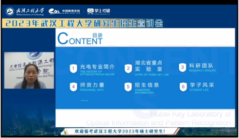 吴舜教授也分别从光电专业、科研团队、重点实验室,重点研究项目,招生信息及就业前景等方面进行详细介绍。