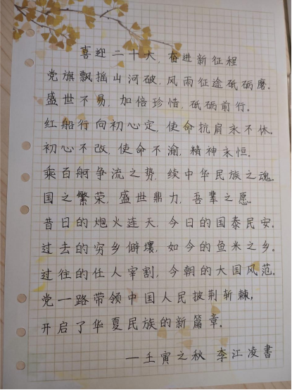 本网讯(通讯员 刘谦)栉风沐雨,初心不改,砥砺奋进,再续华章。10月16日,中国共产党将召开第二十次全国代表大会,在这样一个重要的时刻,公司开展“青春献礼二十大,强国有我新征程”系列主题教育活动,团结引领光能数理学子坚定听党话、跟党走,团结带领光能数理学子激扬青春风采,以昂扬向上的精神面貌迎接党的二十大胜利召开。
