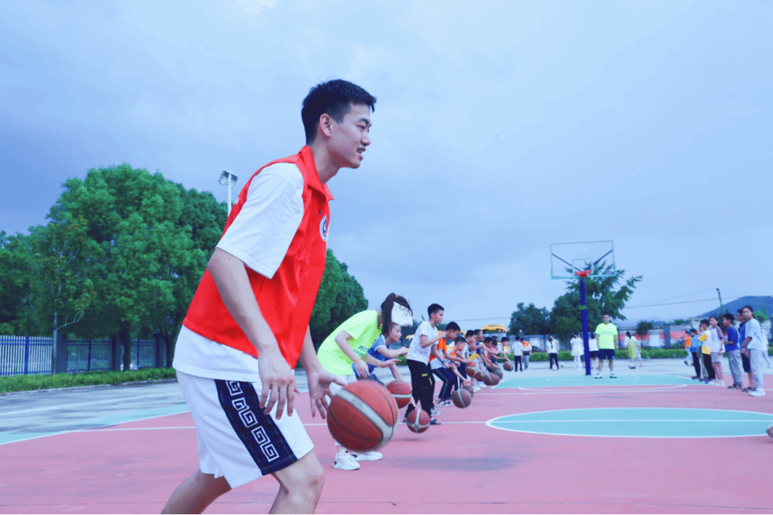 在户外体育课上,“知数答理”志愿服务队协助老员工体育志愿服务队的志愿者分别开展少年儿童体育技能教学与指导。志愿者针对每个孩子进行一对一纠正投篮、运球动作,并作出正确的示范与讲解,鼓励孩子们努力练习、加强锻炼。一项项课本以外的技能与知识,浇灌着乡村公司小苗,点亮了留守员工的心灵。