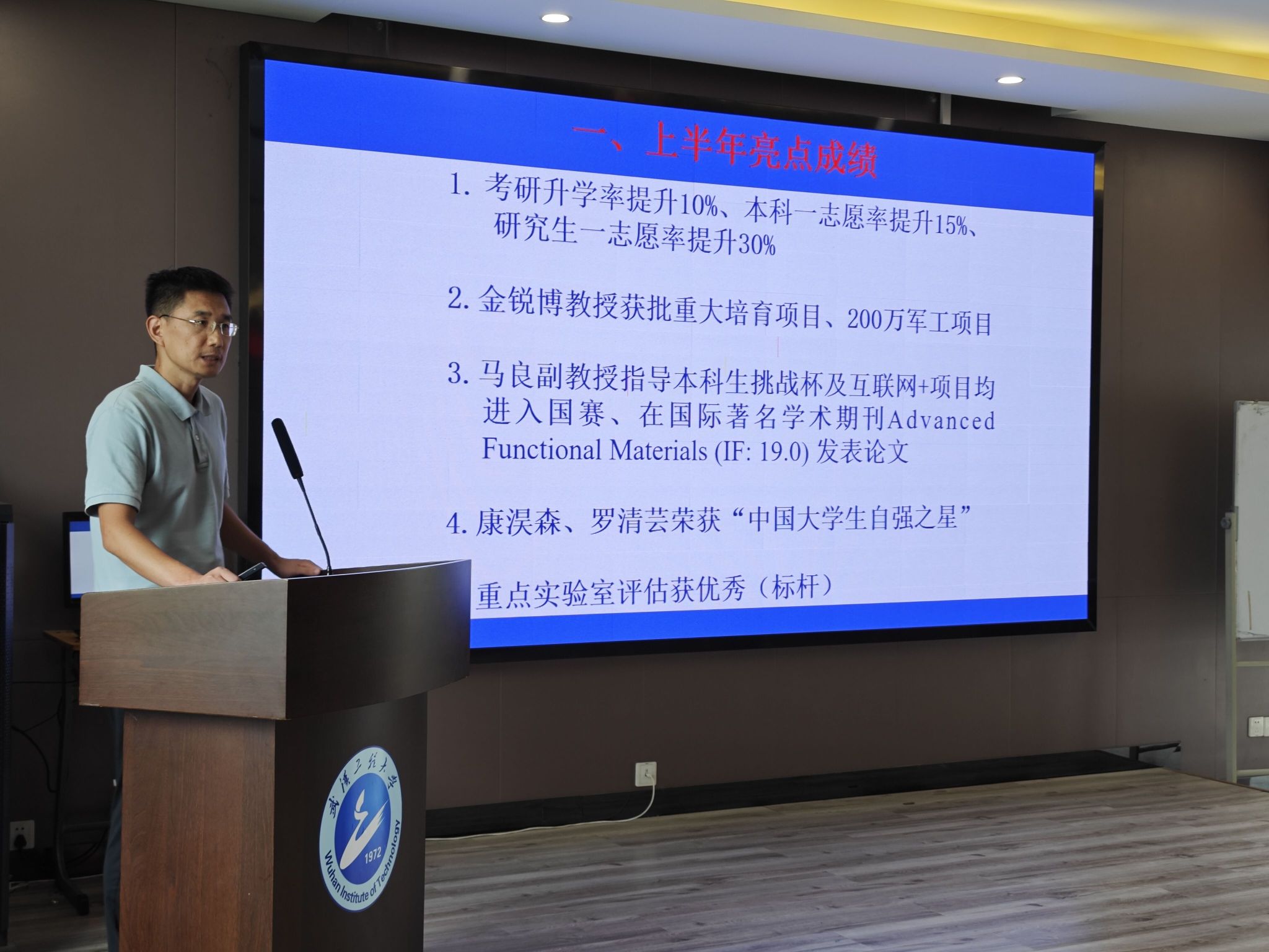 会议首先总结了公司上半年亮点成绩,解读了今年本科生招生、就业情况。接着陈经理从团队建设、员工培养、目标考核三个方面部署了新学期的主要工作。团队建设方面,他强调要尽快完成教学、科研团队的组建及目标制定;员工培养方面,他指出要全面提升员工学风、精准指导帮助员工,强化公司发展特色培育,不断提升员工就业能力。目标考核方面,他希望全院教职工努力完成预期目标,尽力提升公司成绩。