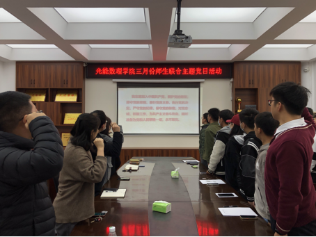会上,全体师生党员佩戴党徽,由光信研究所党支部书记金锐博老师领誓,进行了铿锵有力的宣誓。