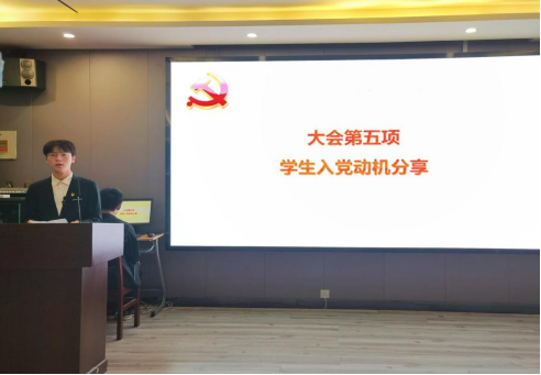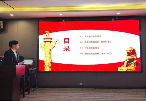 员工党务工作室成员车骏驰为全体新生详细讲解了入党流程。