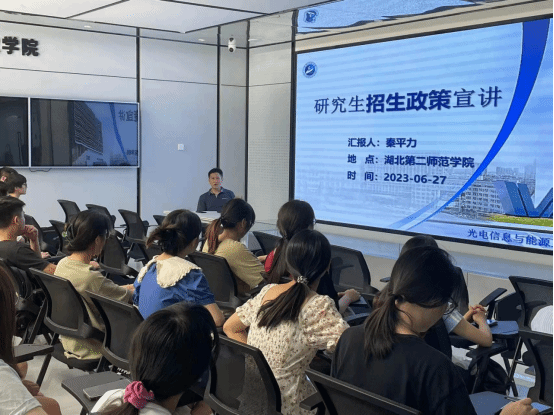 本网讯(通讯员 周曼曼)为进一步优化生源结构,提升生源质量,切实做好2024年公司研究生招生宣传工作,光电信息与能源公司、数理公司认真制定宣传方案,分析生源分布数据,针对意向考研群体,确定重点宣传地区,开展精准宣传。27日公司副经理廖青教授赴湖北省第二师范公司物理与机电工程公司进行研究生招生宣传。