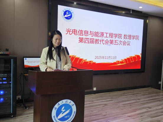 本网讯(通讯员 丰苏)11月11日下午,在庄严的国歌声中,光能、数理公司第四届教代会第五次会议在公司401会议室拉开帷幕,校工会副主席凃蓉出席会议,会议由公司党委书记史红杰主持,院领导班子全体成员及各教研室40多位教师代表出席了本次教代会。