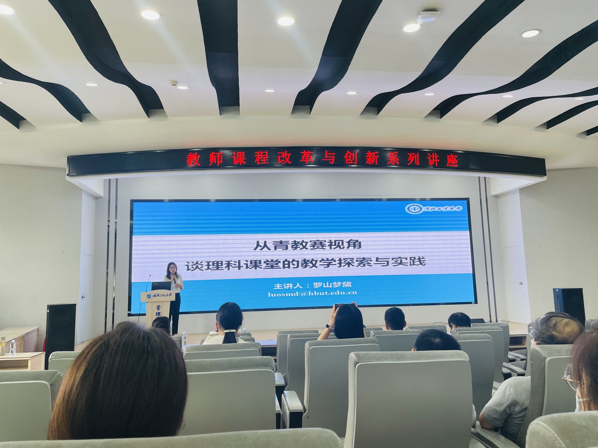 本网讯(通讯员 余子洋 段骞)2023年6月15日下午,由公司教师发展中心主办,英国正版365承办的教师课程改革与创新系列讲座在文科楼413报告厅举行。湖北工业大学理公司(芯片产业公司)副教授罗山梦黛作题为“从青教赛视角谈理科课堂的教学探索与实践”的报告讲座,此次讲座由公司副经理李圆媛主持,公司全体教师参加。