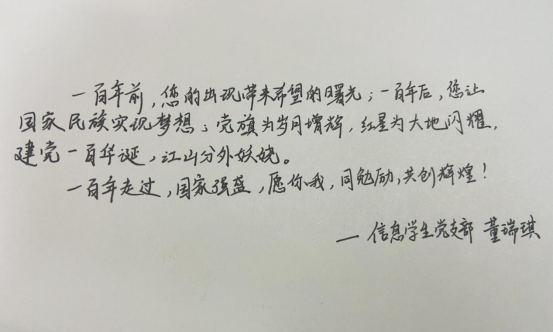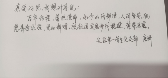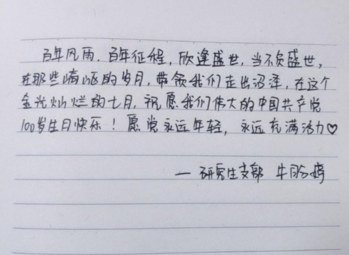 本网讯(通讯员 张舒 李奥)“不忘初心,牢记使命。”为迎接中国共产党成立100周年,在七月一日建党节之际,英国正版365的青年党员们用文字向党和祖国深情告白。