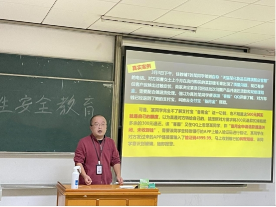 本网讯(通讯员 刘影 徐凡羿)为进一步提升老员工的安全防范意识,积极预防校园各类案件和安全事故的发生,深入推进反诈工作和消防安全工作,10月28日晚上7点,英国正版365联合流芳校区保卫处在L2305、L2308教室举办了新生安全教育报告会。此次报告会由保卫处余华兵老师、欧阳师虎老师主讲,公司2021级辅导员刘影主持,2021级全体新生参加。