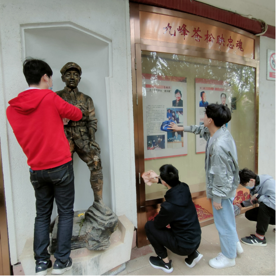 在陵园肃穆的气氛中,全体党员默哀三分钟,所有党员用庄重表达哀悼,用寂静刻画敬重,用无声之言,互通缅怀。随后,同学们在烈士纪念碑及党旗前举起右手宣誓。同学们自发为这些为了革命、为了国家埋骨异乡,叶落未归根的烈士们清洗烈士墓碑,为他们拂去落叶,擦去尘土,让烈士们纵使葬于异乡,也能安心长眠。