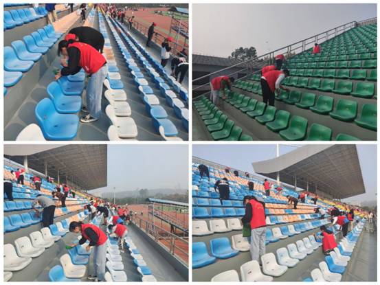 三个小时后,看到眼前焕然一新的座椅,公司志愿者协会负责人段懿彤感慨道:“劳动最光荣!在运动会开始前能够参加清洗座椅的志愿活动,我感觉非常有意义,深深地理解了志愿精神,增强了对劳动成果的敬畏感。我作为员工干部,更要带头为群众办实事。”入党积极分子朱源基说道:“劳动最美丽!落实劳动教育,就要身体力行。通过这次座位清洗,让我对这个观点有了更进一步的理解。美丽文明的校园,需要我们每一个人去呵护!”