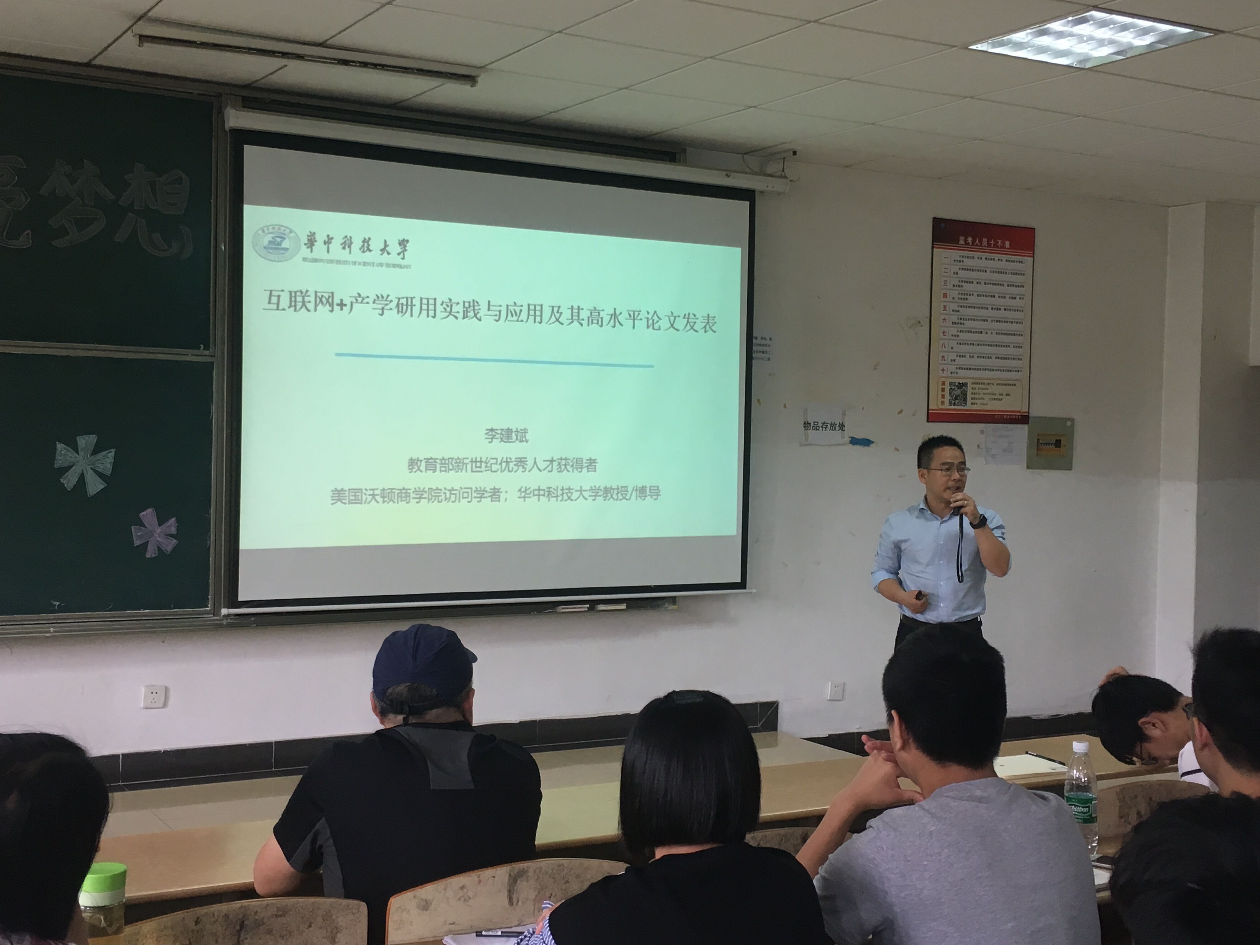 本网讯(通讯员 张杰萌)5月2日下午2点,理公司第十七届学术周系列讲座活动在流芳校区2208教室顺利进行。华中科技大学教授、博士生导师李建斌教授应邀到校给理公司师生做了题目为《互联网+产学研用实践与应用及其高水平论文发表》的学术讲座。