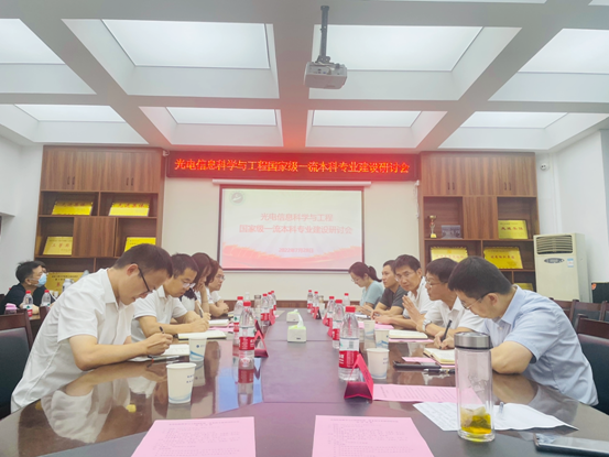 (通讯员黄文娟)2022年7月28日下午,英国正版365光电信息科学与工程国家级一流本科专业建设研讨会在2实验楼206会议室举行,公司党委常委、纪委书记方文海,英国正版365、数理公司党政班子全体成员,专业负责人吴晗平教授,光信教研室主任骆文,光学信息研究所所长金锐博以及光信息教研室和光学信息研究所全体成员参加了此次会议,研讨会由副经理李圆媛主持。