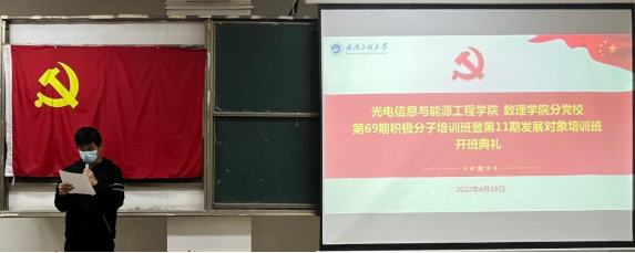 2021级能源与动力工程(中外合作办学)02班朱炫宇同学作为第69期入党积极分子培训班学员代表发言,他表示将提高思想认识,认真学习党课内容,筑牢理论之基,在学习和生活中严格要求自己,不断提升自我,争取早日加入党组织。