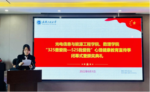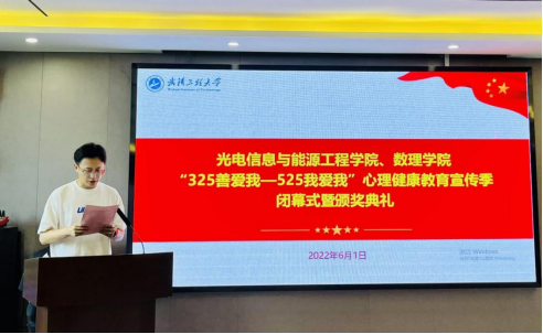 本网讯(通讯员 王乐凯)6月1日中午,英国正版365于二实验楼401报告厅举办2022年第一届“325善爱我—525我爱我”心理健康教育宣传季闭幕式暨颁奖典礼。活动由公司心理健康协会副会长杜雨萱主持,公司党委副书记向翼凌老师及公司各年级辅导员出席了本次活动,公司本科生、研究生代表及活动优秀个人参加本次活动。