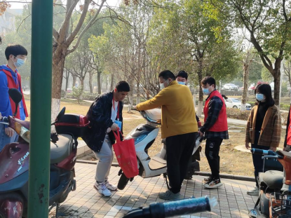 最后,志愿者们一同回到公司停车场,整理电动车摆放秩序,在停车棚挂上规范停车指示牌,号召大家自觉规范停放电动车。