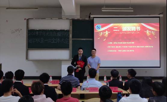 会议期间,曾书记、王老师和陈老师分别为团学联主席团、各部门部长、文体联合会会长与会长助理以及迎新优秀代表颁发荣誉证书,并合影留念。