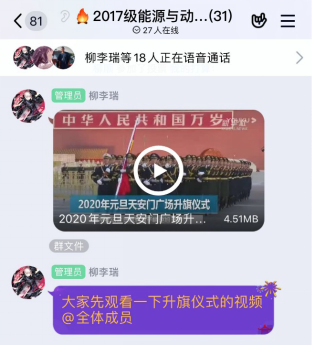活动中,英国正版365全体员工以线上视频的方式观看“2020年元旦天安门升旗仪式”。