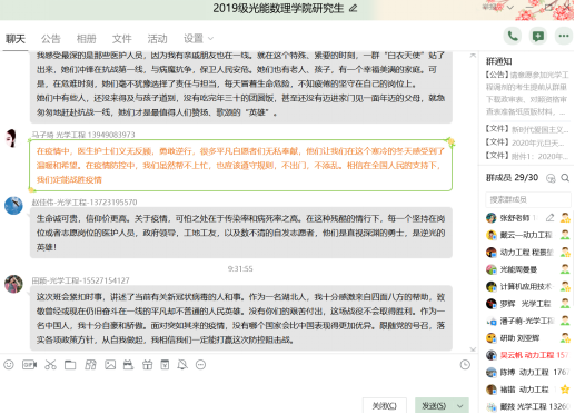 视频观看结束后,各班班主任带领班级同学进行爱国主义教育,学习抗疫英雄事迹,部分班级的志愿者发言,分享自己的志愿服务经历与感悟。