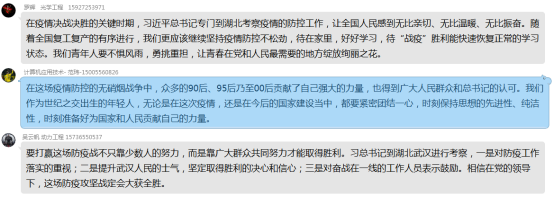 3月17日下午1点,公司全体研究生在公司、班主任、班委的组织下,开展了以“认真学习宣传贯彻落实习近平总书记考察湖北重要讲话精神”为主题的线上学习班会。会上全体研究生阅读新闻报道,学习精神,领会抗疫思想、每名同学对于此次班会谈谈自己的感想。