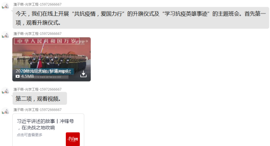 公司分两次召开研究生线上主题班会活动。3月2日上午9时,英国正版365全体研究生在公司、班主任、班委的组织下,开展了以“共抗疫情,爱国力行”为主题的线上学习班会。班会上全体研究生观看“2020年元旦天安门升旗仪式”;观看并学习“习近平讲述的故事---冲锋号,在决战之地吹响”; 学习贯彻落实《新时代爱国主义教育实施纲要》、《教育系统关于学习宣传贯彻落实<新时代爱国主义教育实施纲领>的工作方案》;学习抗疫英雄事迹,最后分别发表了自己的观点。