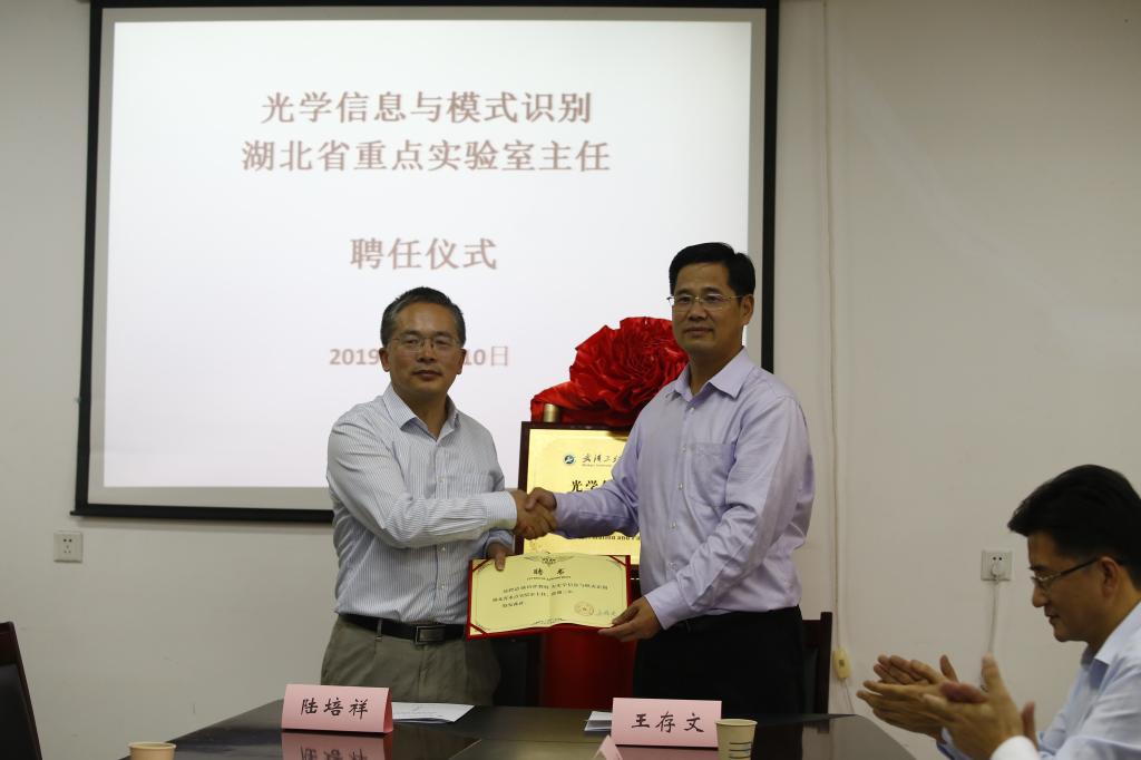 (通讯员 熊伦)10月10日下午,光学信息与模式识别湖北省重点实验室揭牌暨主任聘任仪式在英国正版365二楼会议室隆重举行。公司党委书记程幼金、董事长王存文、副董事长张文学和重点实验室受聘主任陆培祥教授出席。仪式由副董事长张文学主持。