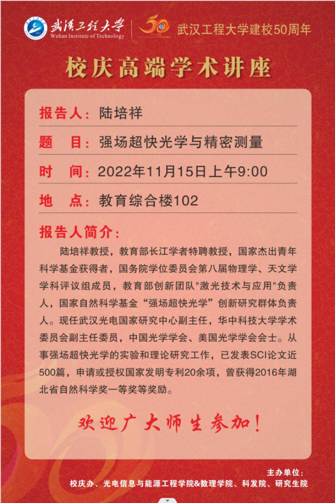 【校庆高端学术讲座】——强场超快光学与精密测量