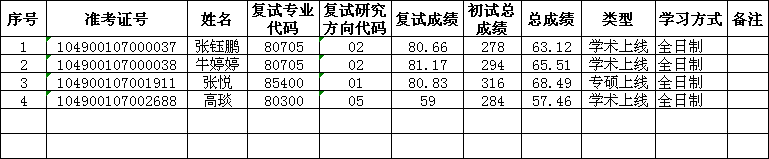 2.录取原则:按照复试阶段,实行分批次录取,先录取第一志愿考生,再录取调剂考生。各批次按考生总成绩从高到低依次录取。有以下情况之一者不予录取:资格审核不合格者不予录取;复试过程中如有不诚信行为且经查实者不予录取;加试科目不合格者不予录取;复试总成绩不合格者不予录取。